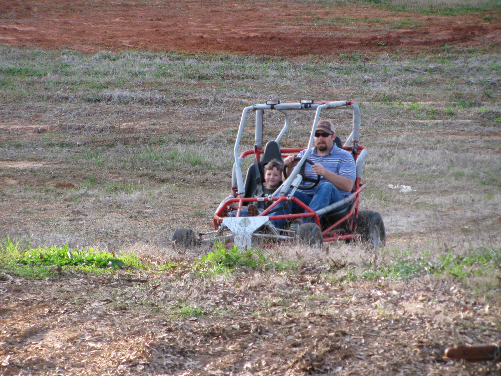 We are now officially in business. Jay made a small dirt track with the box blade so the yard doesn't get worn down making laps with the go-cart. Jeff Foxworthy could add a new one to his list: You might be a "red-neck" if you have a dirt track in your back yard! Ha! It sure is fun though! I even took a go at it myself!